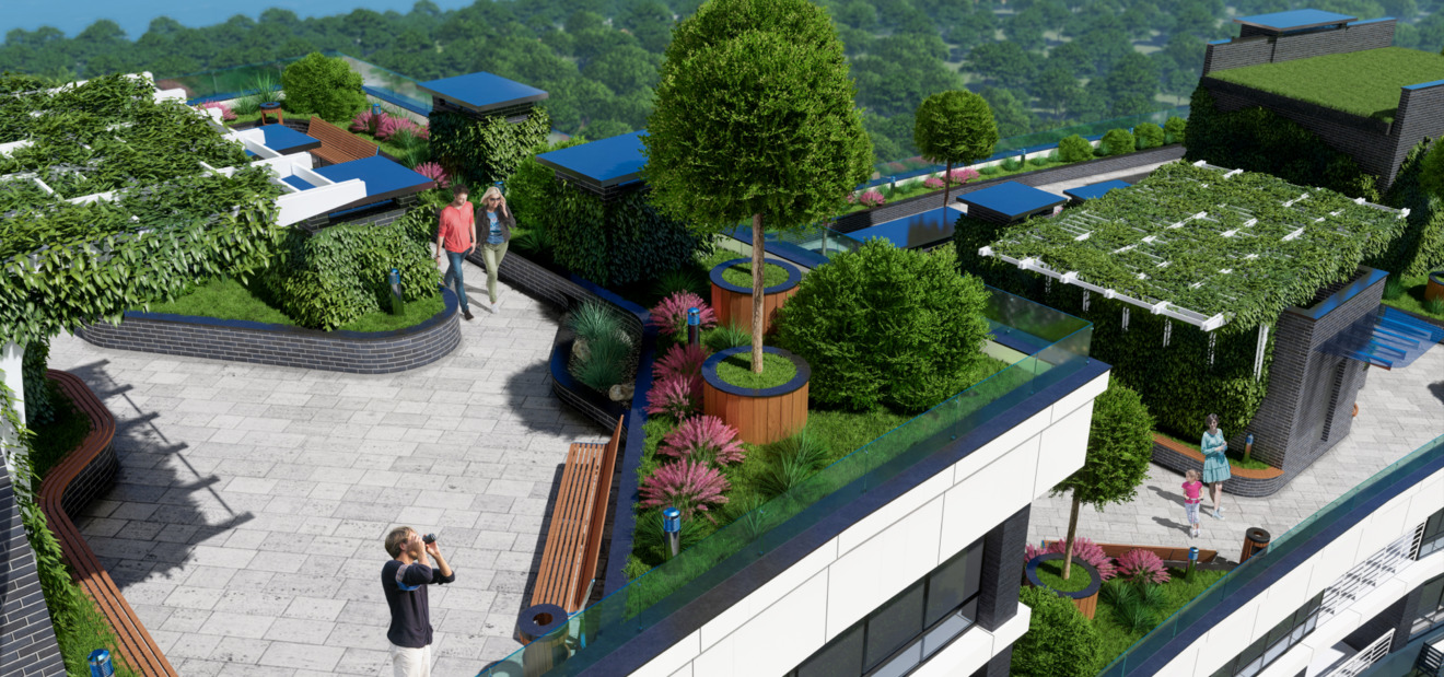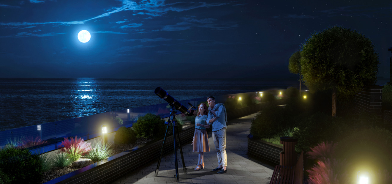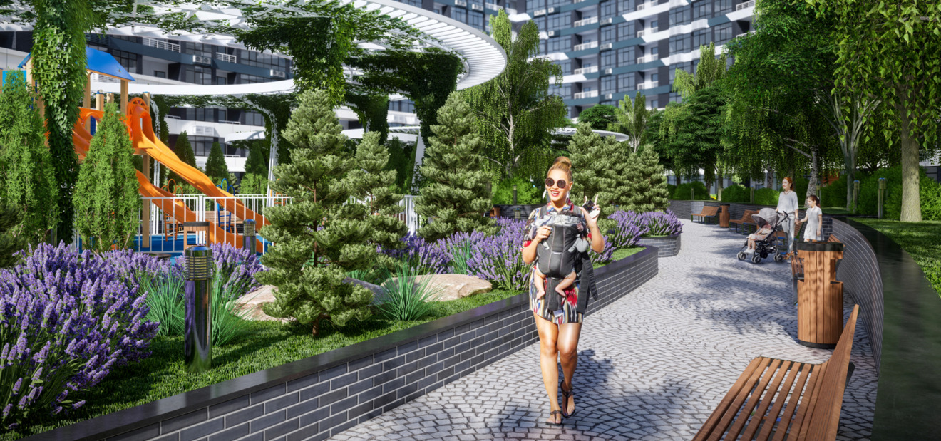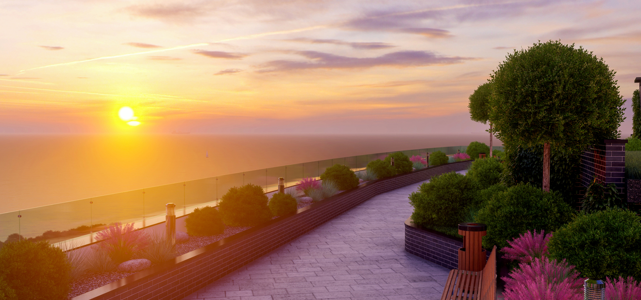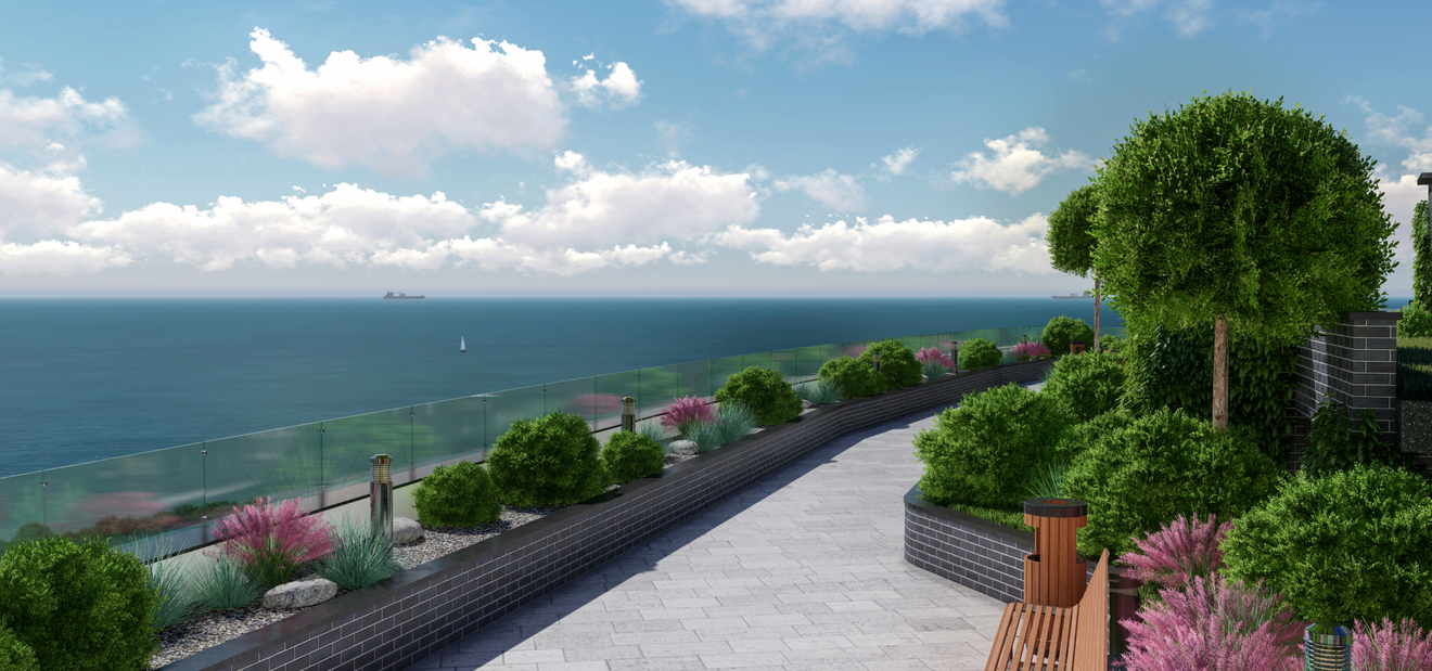 Архітектурне рішення проекту АТМОСФЕРА враховує прибережне розташування житлового комплексу. Фасад будівлі покликаний давати жителям оптимальну кількість сонячного світла і максимальне - свіжого морського повітря. А форма будинку ідеально створює локальний внутрішній двір. Вона нагадує океанський лайнер і відображає філософію проекту: ковзати по життю, як по морській поверхні.